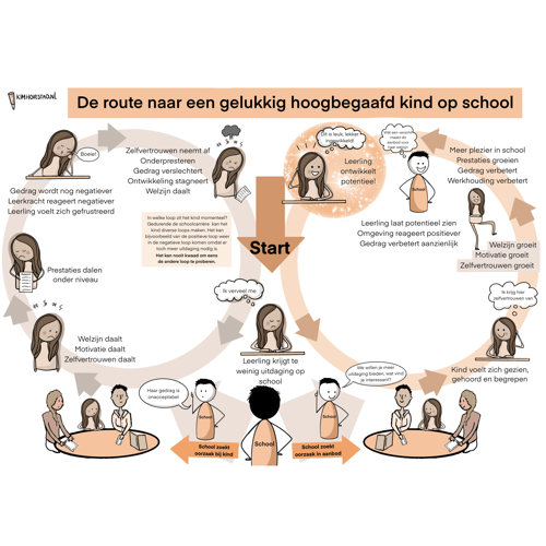 De route naar een gelukkig hoogbegaafd kind op school – praatplaat